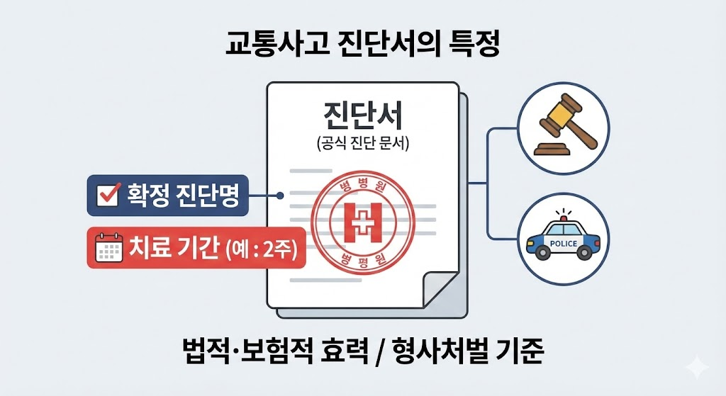 - 진단서 = 공식·법적 효력 / 교통사고 필수