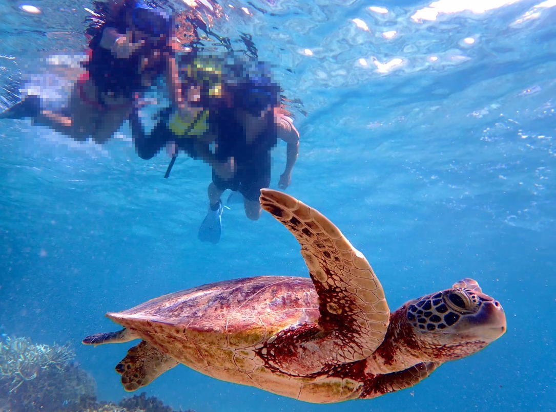 ‘거북이 스팟’은 미야코지마 현지 투어에서 지정하는 바다거북이 출몰 구역을 뜻합니다. 해초가 많은 해역이 많고, 가이드와 함께 가면 거의 확정적으로 만날 수 있습니다.
