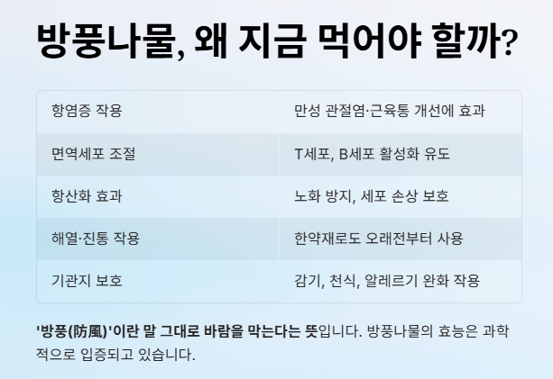 방풍나물은 단순한 반찬이 아니라, 몸 안의 방어벽을 세우는 ‘면역 기능 식물’입니다.
