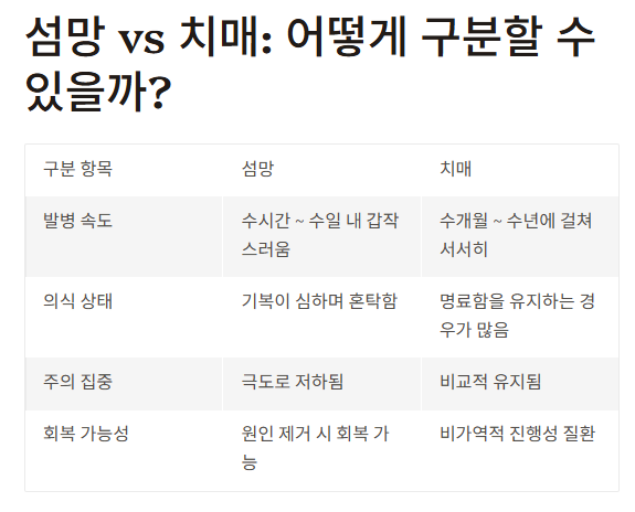 🧬 섬망 vs 치매: 어떻게 구분할 수 있을까?