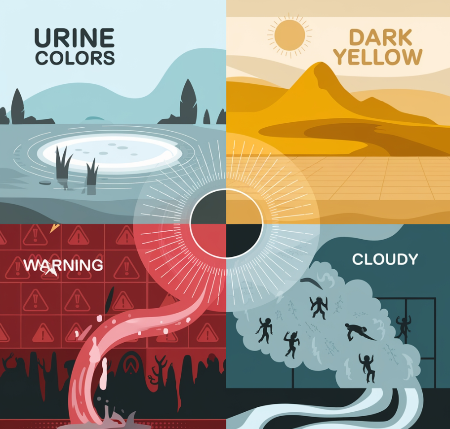 - 짙은 노란색: 탈수 상태. 물 섭취를 늘려야 함.
