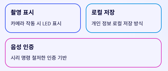 기술이 발전할수록, 개인정보 보호 문제는 더 중요해집니다. 애플은 ‘프라이버시 최우선’ 전략을 고수하고 있으며, 스마트 안경 역시 카메라 작동 시 외부에 LED 표시가 되도록 설계 중입니다.
