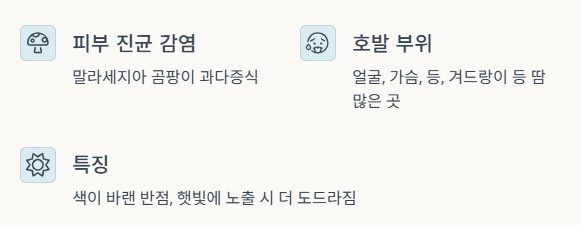 | 원인 | 말라세지아 진균 |