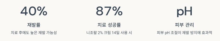 - 국내 분당서울대병원 보고서: “피부 pH 조절이 재발 방지에 효과적”