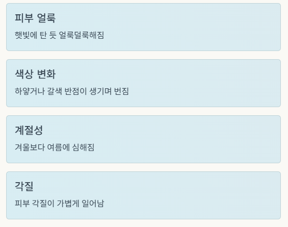 - 햇빛에 탄 듯 피부가 얼룩덜룩해짐