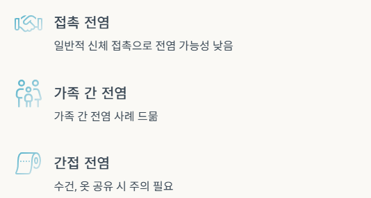 | 전염성 | 낮음 (간접 전염 주의) |
