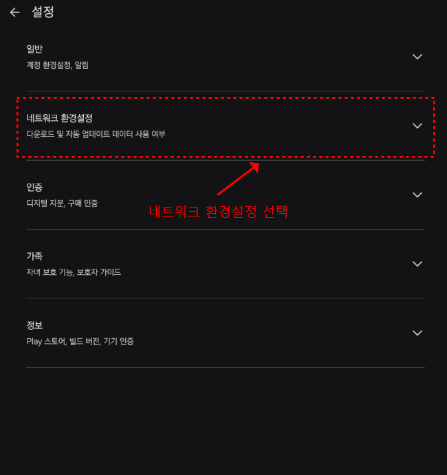 - 메뉴 중 ‘설정’ → ‘네트워크 환경 설정’ → ‘앱 자동 업데이트’ 선택