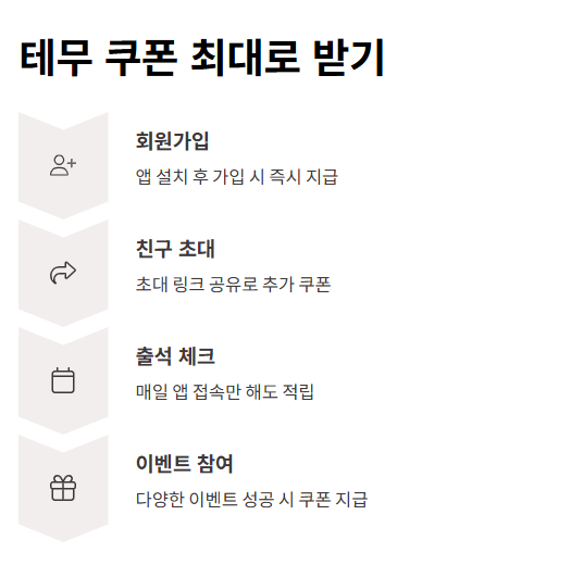 - 테무 쿠폰: 출석체크·친구초대 등 다양한 경로