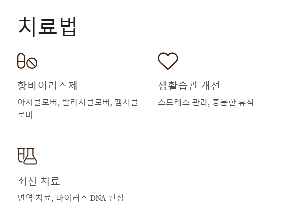 - 면역 치료: 바이러스 활성화를 억제하는 신약 연구 중.